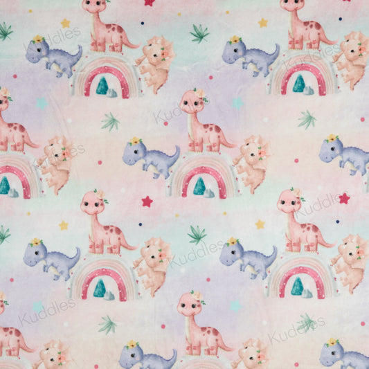 Cute Little Dinosaurs (Pink) Reversible Minky Blanket