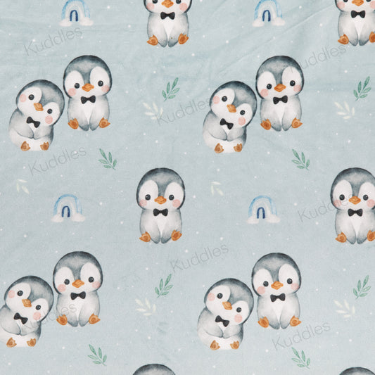 Cute Little Penguins (Blue) Reversible Minky Blanket