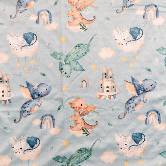 Dragons in the Sky (Blue) Reversible Minky Blanket