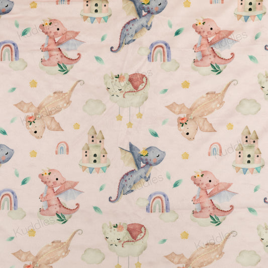 Dragons in the Sky (Pink) Reversible Minky Blanket