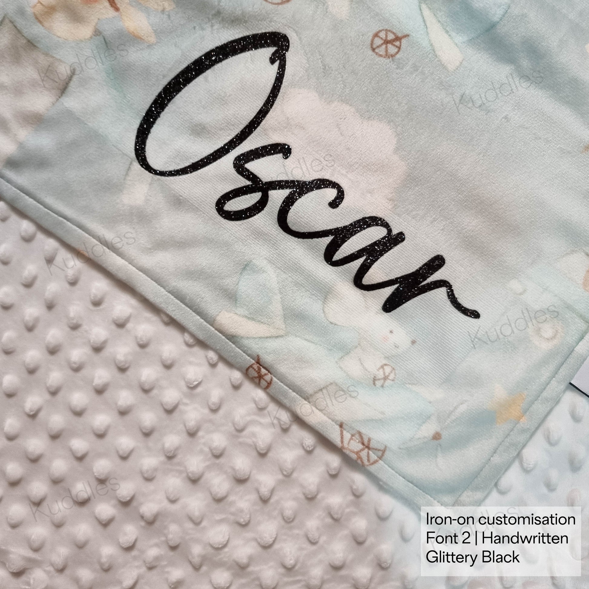 Customise your little one's name on our blanket and pillow in two ways - Iron-on or Printable (made-to-order)!