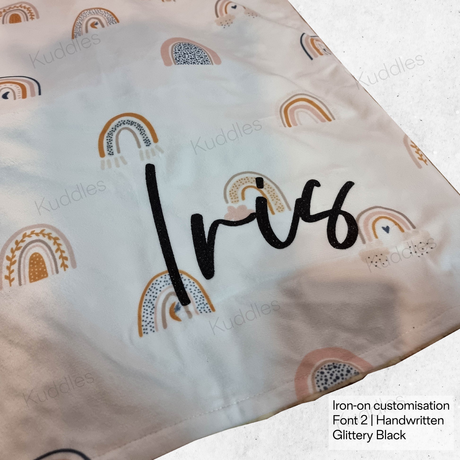 Customise your little one's name on our blanket and pillow in two ways - Iron-on or Printable (made-to-order)!