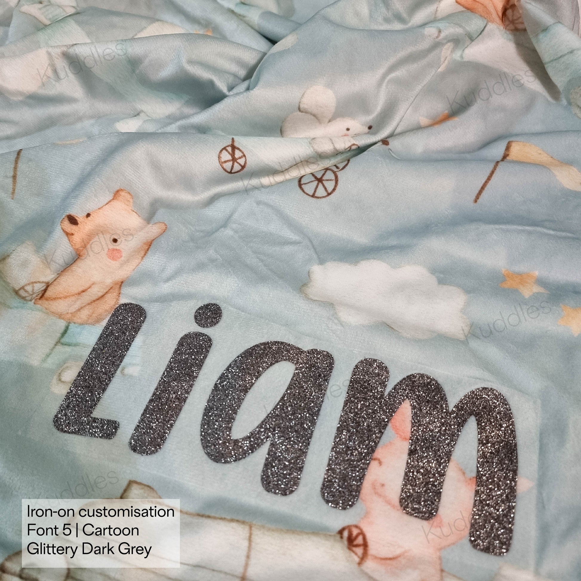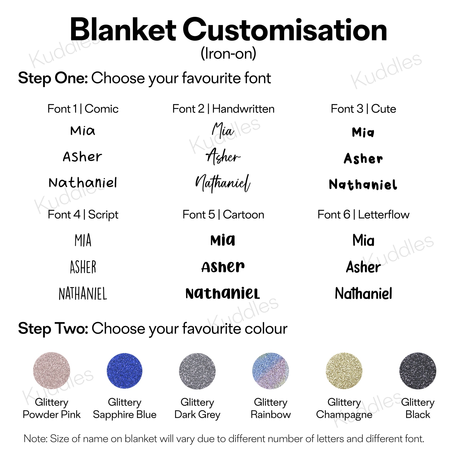 Customise your little one's name on our blanket and pillow in two ways - Iron-on or Printable (made-to-order)!